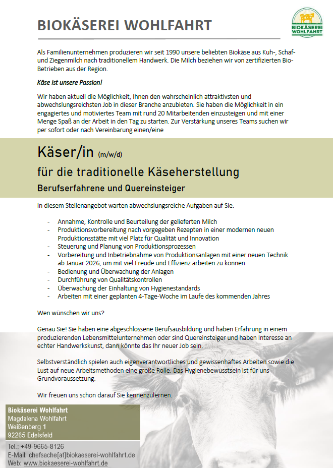 Unser Plakat für Ihren Laden und unser beschriftbarer Käseaufsteller für Ihre Käsetheke jeweils als PDF:
